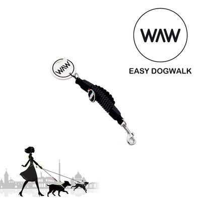 WAW, het perfecte hulpmiddel om de impact van de trekkracht van de hond tot wel 40% te verminderen. Door gebruik worden blessures, zowel bij de hond als het baasje, voorkomen. "Ik heb een kleine hond, die trekt niet" is iets wat wij regelmatig horen, maar heeft u weleens nagedacht over hoe vaak u zelf rukken aan de lijn geeft? WAW is geschikt voor grote en kleinere honden en helpt zelfs rug- en nekhernia's te voorkomen. WAW is geen elastiek oplossing, zoals andere producten op de markt, maar een product gemaakt van een geheime samenstelling kunststof, dat daadwerkelijk werkt.
